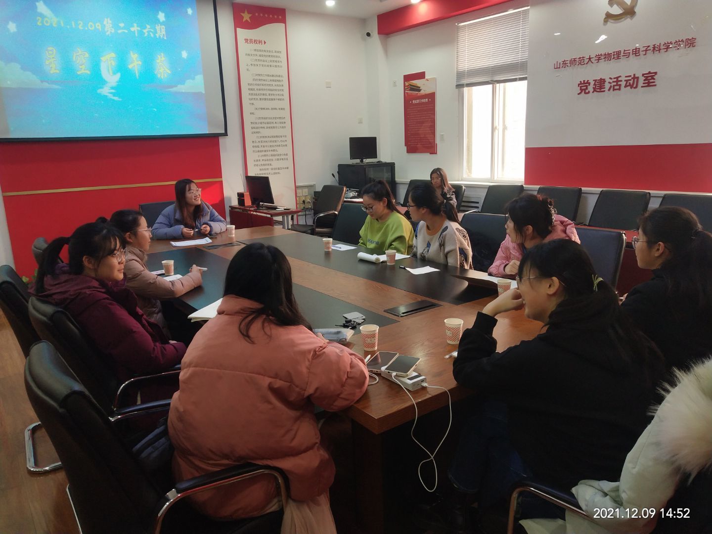 12月9日下午,物理与电子科学学院于文澜楼A区F311党建活动室举办第二十六期星空下午茶师生交流会,学院21级辅导员尹素月、19级博士研究生郝倩倩担任本次活动主讲人,二十余名同学到场参与活动。本次星空下午茶由两场交流会组成。尹素月借“你说我画”小游戏开场,迅速拉近老师与同学距离,通过引导在场同学深入思考误解与沟通问题,提出今天的主题“人际交往”。在讨论环节中,同学们提出自己的疑惑,尹素月鼓励大家集思广益、...