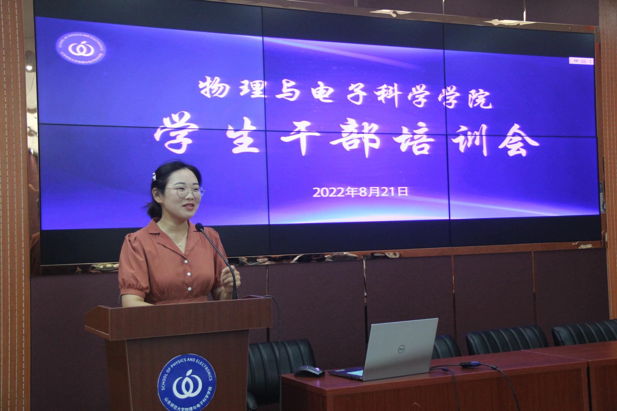 为进一步强化学生干部队伍建设,提高学生干部的综合素质,更好的推进学生工作的健康稳定发展。8月21日上午,物理与电子科学学院于文澜楼F347召开学生干部培训会。学院团委书记周勇、全体辅导员出席本次会议,学院学生会干部及各班班长、团支书参加本次大会。本次会议由18级辅导员方芳主持。周勇作上学期各部门的工作总结,着重探讨各部门工作过程中存在的问题及解决方案,他表示,学生干部要立足工作岗位,充分展现自身对工作的...