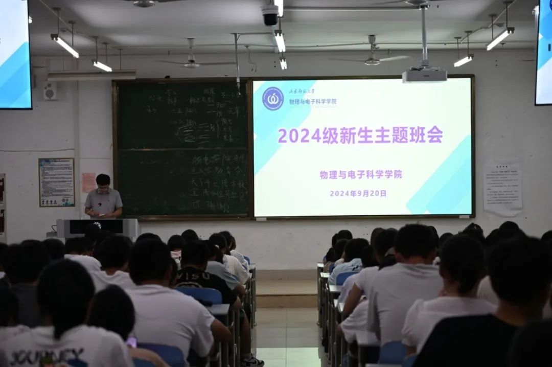 随着金秋九月的温柔阳光洒满校园,物理与电子科学学院又迎来了一批充满激情与梦想的新生。为了增进新生之间的相互了解,明确学习目标,9月20日下午,物理与电子科学学院于文渊楼C区234教室和C236教室召开本科新生第一次主题班会。辅导员苏恒作为本次会议主讲人,2024级全体新生到场参加。苏恒首先就新生们在军训中刻苦努力的训练和取得的卓越成绩给予了充分肯定,同时并作了简要的自我介绍,拉近与新生之间的关系,彼此间建立起了良好的友谊。...