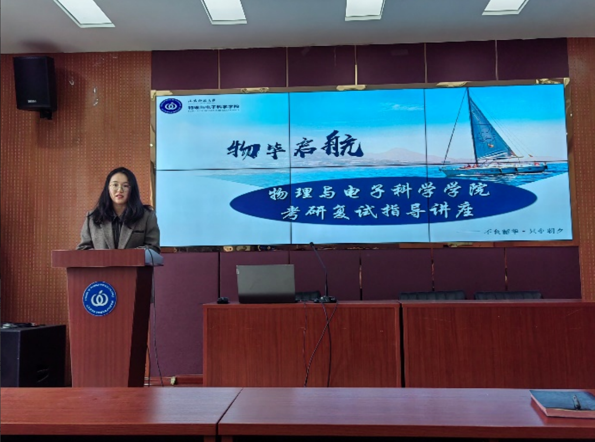 3月4日下午,物理与电子科学学院于文澜楼F347会议室举办2025届考研复试指导专题讲座。学院副院长王晶晶、教授赵丽娜担任主讲嘉宾,50余名2021级本科毕业生参加。会议由学院团委书记兼学工部主任方芳主持。王晶晶从本科学习和研究生深造的双重维度提出具体要求。她指出,本科毕业论文需体现学术规范性与创新性,建议学生结合学科前沿热点完善研究内容;研究生复试成绩占总评的比重较大,通过论文撰写提升学科专业素养与科研能力,可以达到与研究生复试备战相得益彰的良好效果。...
