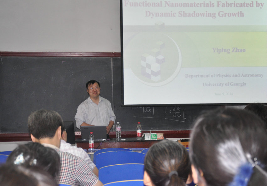 美国佐治亚大学赵奕平教授来我校做学术报告 6月5日下午,应物理与电子科学学院的邀请,美国佐治亚大学物理与天文学系纳米科学与工程中心教授赵奕平博士来我校访问,并在校本部2215多媒体教室为我校50余名师生做了题...
