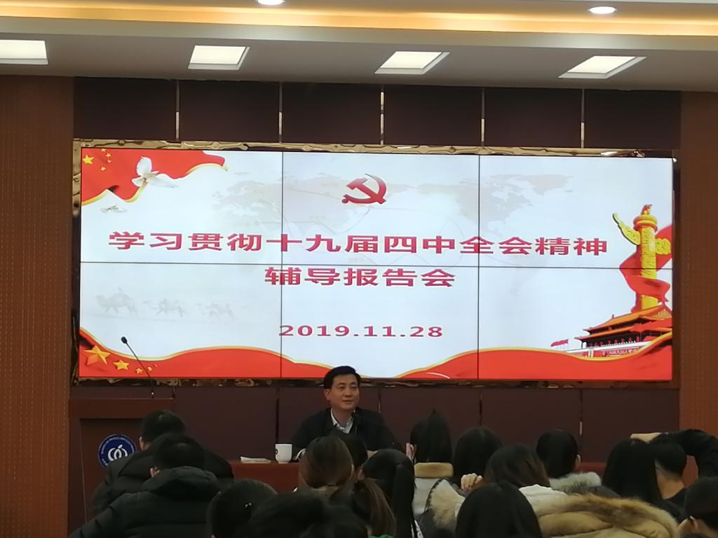 11月28日下午,为深入学习贯彻党的十九届四中全会精神和习近平总书记重要讲话,根据学校安排,学校宣讲团成员、党委办公室主任兼保密工作室主任毕研强来我院作学习贯彻十九届四中全会精神辅导报会会,与学院师生交流学习心得体会。报告会于文澜楼A区F347会议室进行,会议由学院党委书记谢德仁主持。毕研强主要围绕四中全会通过的《中共中央K云体育官方入口坚持和完善中国特色社会主义制度、推进国家治理体系和治理能力现代化若干重大问题的...
