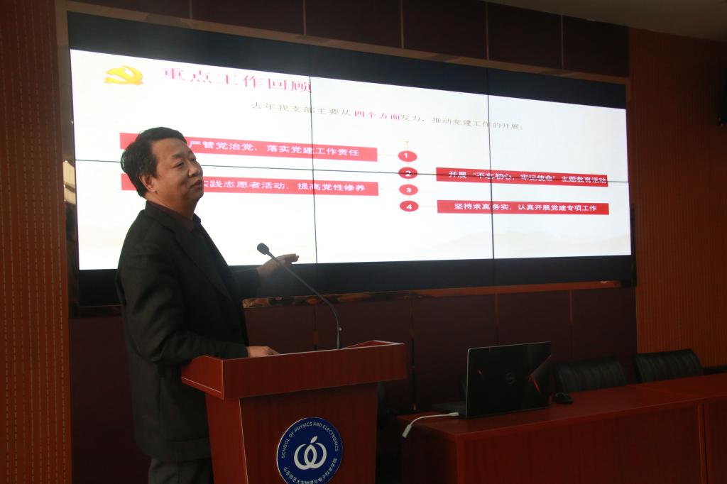1月10日下午,物电学院在长清湖校区文澜楼F347报告厅召开党支部书记抓党建述职评议会议。物电学院党委委员、各党支部书记、组织委员和宣传委员共40多人参加会议。学院党委书记谢德仁作点评讲话,党委副书记杜伟主持了会议。学院4名在职教工党支部书记和7名学生党支部书记围绕2019年度本支部履行基层党建工作责任、提升党建工作质量、学习贯彻习近平新时代中国特色社会主义思想和党的十九大、十九届四中全会精神、开展“不忘初心...