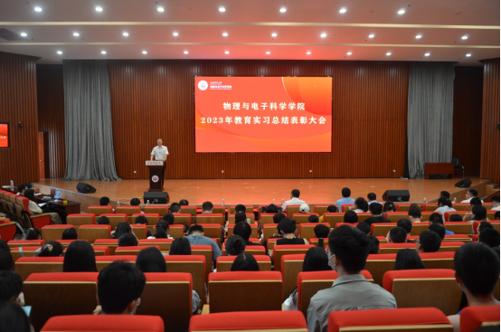 6月2日下午14:00,学院于文昌楼105召开教育实习总结表彰大会。教务处副处长赵曰峰,学院党委书记谢德仁、党委副书记杜伟、副院长任俊峰、副院长宋玉志出席活动。全体实习指导教师、2020级物理学专业7个班级的普通师范生参加会议。会议由任俊峰主持。赵曰峰在致辞中指出,学校对教育实习十分重视,领导及相关负责教师一直持续关注学生实习情况。通过此次教育实习,学生不仅在教学能力方面获取了宝贵经验,还通过授课的方式使自己学习物理的能力获得了巨大提升。...